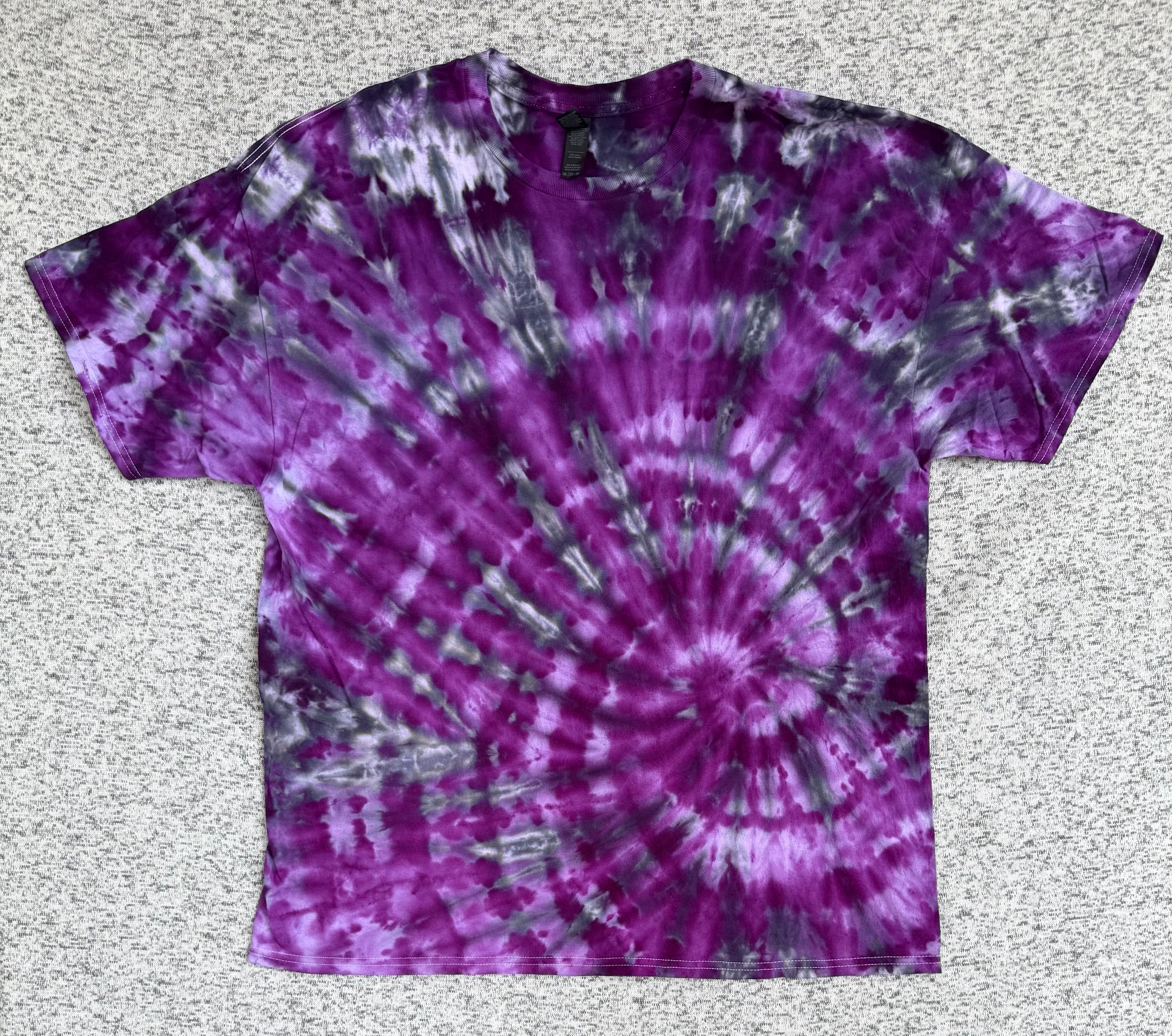 MHD Dark Purple Lavender Grey Black Spiral Ice Dye Tie Dye Short Sleeve Shirt 100% Cotton Size XXL